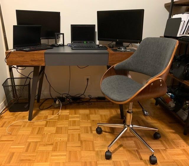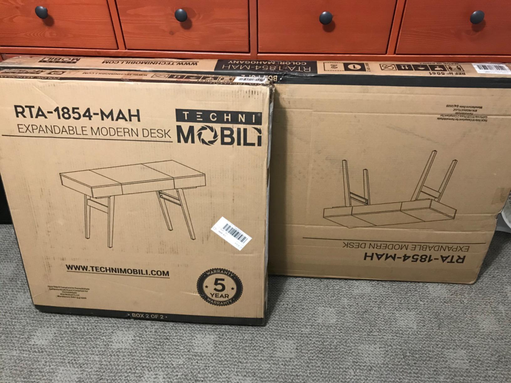 Our Techni Mobili Expandable Modern Desk is the perfect fit for your home office. Crafted with MDF panels on its desktop, this desk strikes a clean-lined rectangular silhouette in dual-tone antique mahogany and grey finish. The durable metal legs make its structure sturdier as a workstation. The tabletop surface expands into two storage space on both sides, great for storing your work essential materials,  while a pull-out front drawer offers out-of-sight storage for your keyboard, accessories or even a small laptop. This desk includes a 5-year limited warranty. Color: Mahogany