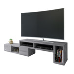 Techni Mobili Expandable TV Stand will enhance your entertainment area with this asymmetrical-inspired piece of art. Finished in calming grey, this 53" expandable TV stand is the perfect blend of style and functionality. Easily slides open to a full length of 82", this piece is uniquely yours to design to accommodate your needs within your entertainment space. With two large storage drawers and four shelves to keep your media items organized and clutter-free, the versatility of this piece makes this a must-have in any home. Color: Grey